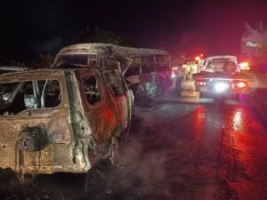 Hombre muere calcinado al colisionar un minibús y una yipeta en Cumayasa, La Romana
