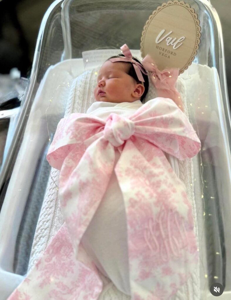 “Vail Horford Vega 11.26.25 🎀Nuestra mesa, nuestras risas, nuestro amor… todo creció. Nuestro sexto regalo del cielo, la más reciente razón de nuestra alegría. Te esperábamos con tanta emoción. Te amo, chiquita mía”.
