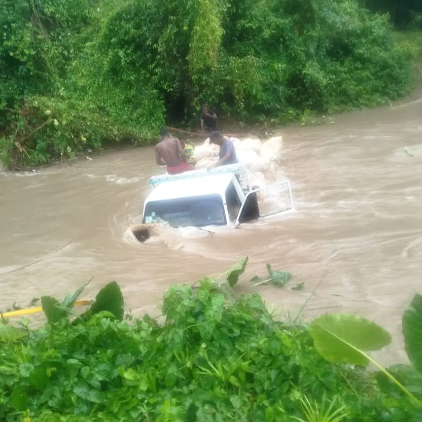 EL SEIBO.– Un camión quedó atrapado la tarde de este domingo tras ser sorprendido por la crecida de un arroyo en el kilómetro 11, Cruce de Pavón, en la provincia El Seibo.