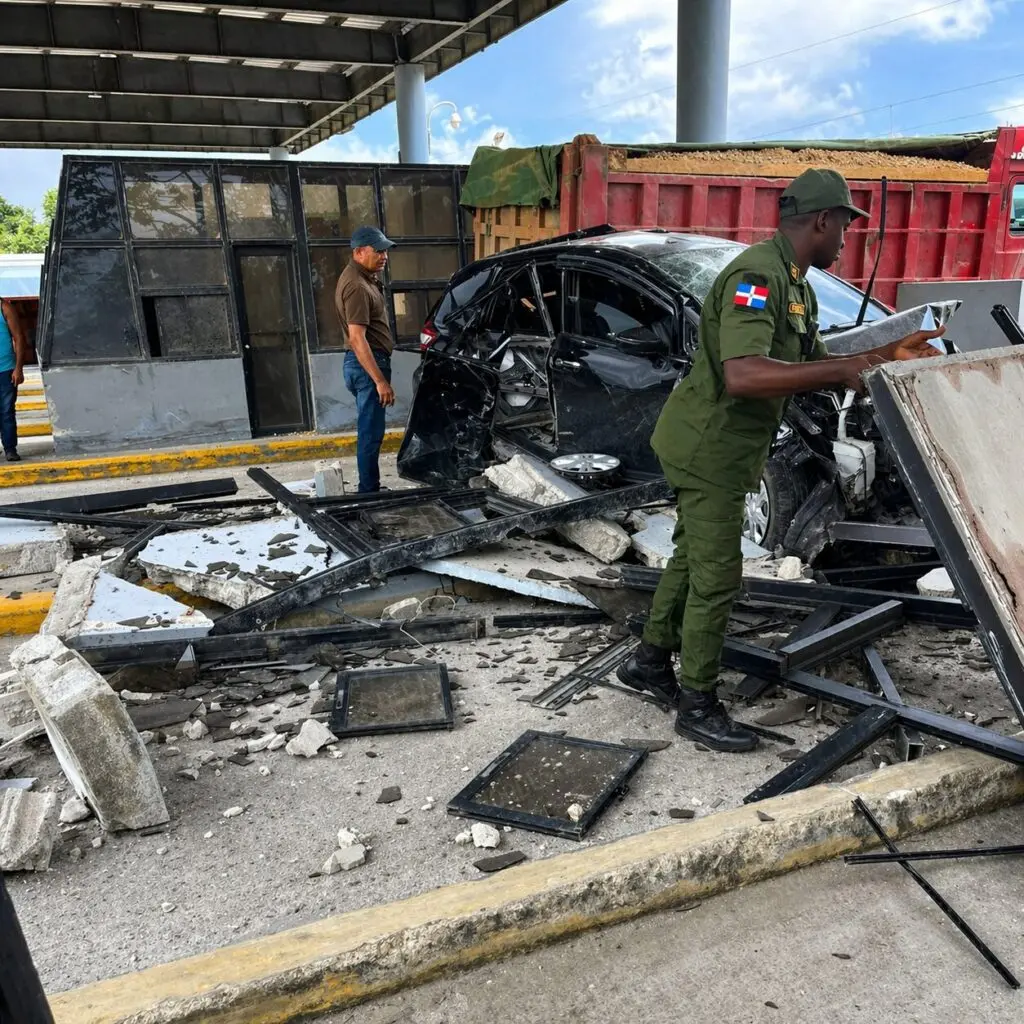 Camión volteo impacta vehículo en el peaje de El Catey y deja una joven herida