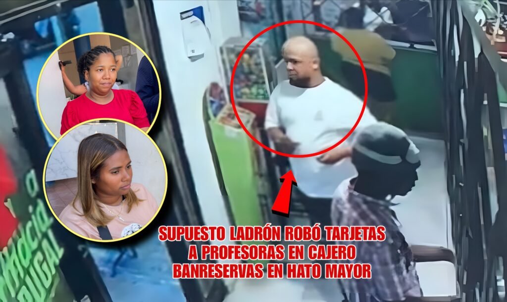 HATO MAYOR. – Dos profesoras que fueron víctimas de dos delincuentes el pasado jueves, pusieron a circular una imagen y video, de uno de los dos supuestos delincuentes mientras entraba a una farmacia local a realizar un retiro desde una de las tarjetas de débito, que había sustraído en el cajero del banco Banreservas.