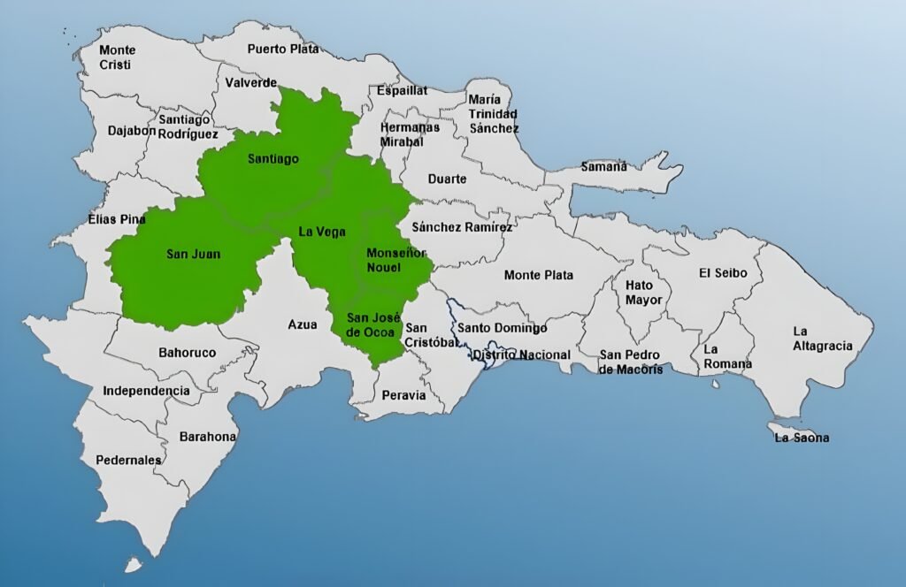 Las provincias bajo alerta son Santiago, San Juan, Monseñor Nouel, La Vega y San José de Ocoa, según informó el organismo en un comunicado.