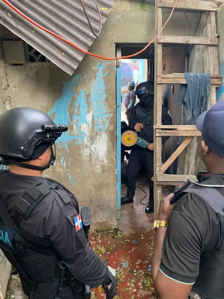 Durante los operativos en La Romana, los agentes utilizaron equipos especializados, incluyendo mandarria, sierra eléctrica y una planta eléctrica, para penetrar y desmantelar estructuras improvisadas empleadas como puntos de expendio de sustancias controladas.