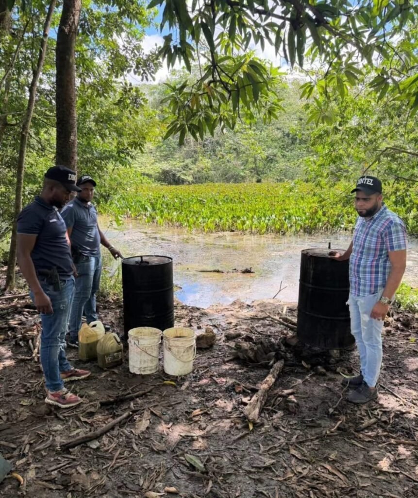 MONTE PLATA — Agentes de la Subdirección Central de Inteligencia de Santo Domingo Norte (DINTEL), acompañados por miembros de la Dirección Central de Investigaciones Criminales (DICRIM) con asiento en Monte Plata, desmantelaron un laboratorio clandestino dedicado a la producción de bebidas alcohólicas adulteradas en el distrito municipal Chirino. El operativo se efectuó tras labores de seguimiento e inteligencia que permitieron ubicar la instalación en un terreno baldío del sector Talado.