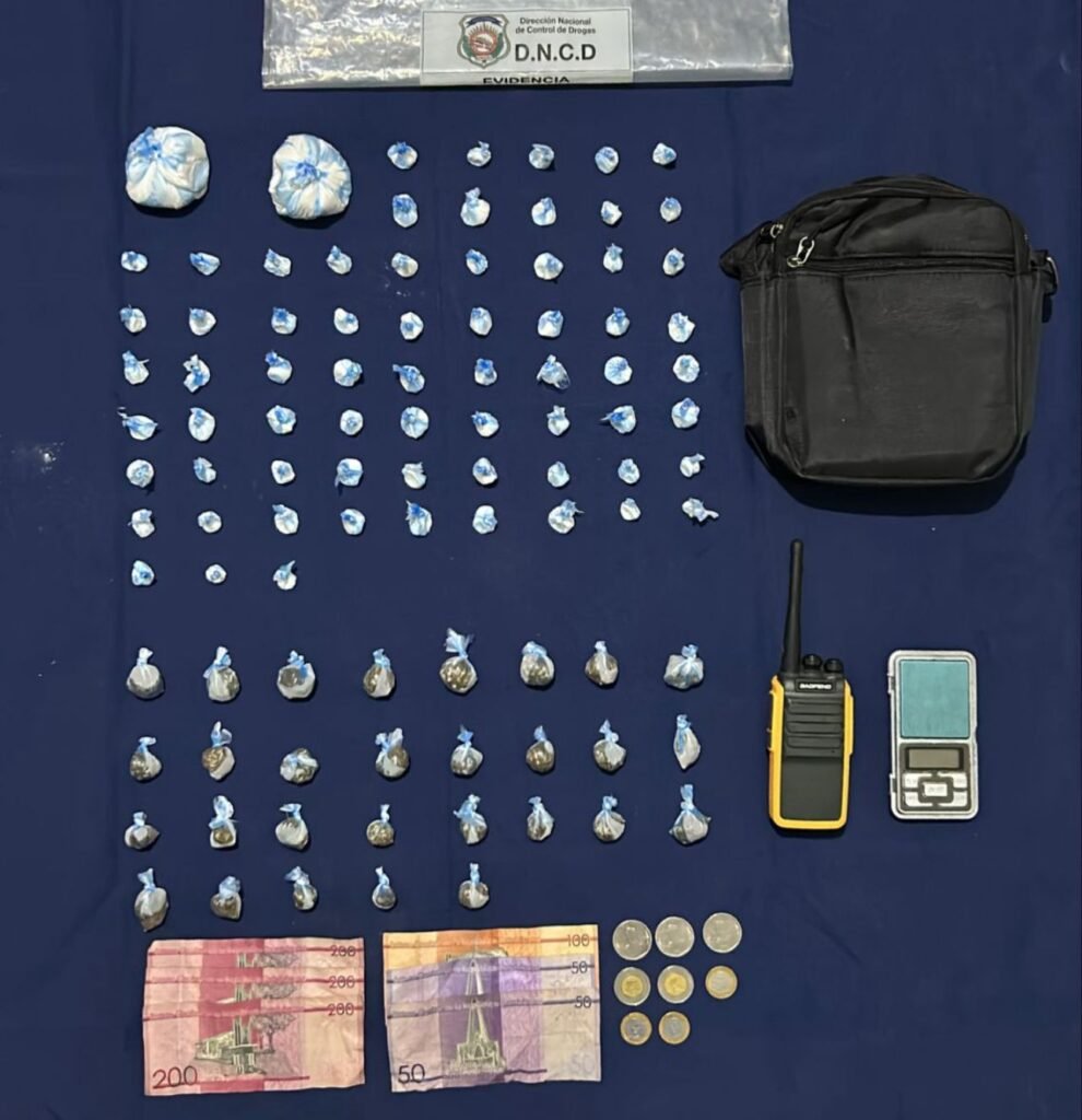De acuerdo con el informe ofrecido por las autoridades, al momento del arresto se ocuparon distintas drogas como marihuana y cocaína, así como una radio de comunicación, dinero en efectivo y una balanza utilizada para pesar la sustancia ilícita, que fue ocupada.