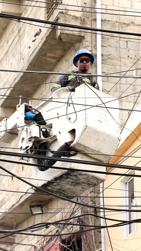 SANTO DOMINGO ESTE. – La Empresa Distribuidora de Electricidad del Este (Edeeste) informa que continúa con los trabajos de rehabilitación de redes eléctricas y la normalización de usuarios no registrados en el sector Los Tres Brazos, municipio Santo Domingo Este.