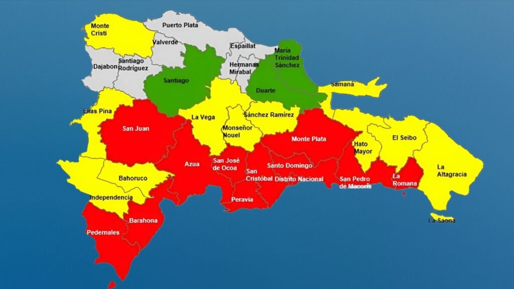 Con estas incorporaciones, ya son 11 las provincias en alerta roja, sumándose a Barahona, San Cristóbal, Santo Domingo, San José de Ocoa, San Juan, Azua, Peravia y Pedernales. Además del Distrito Nacional.