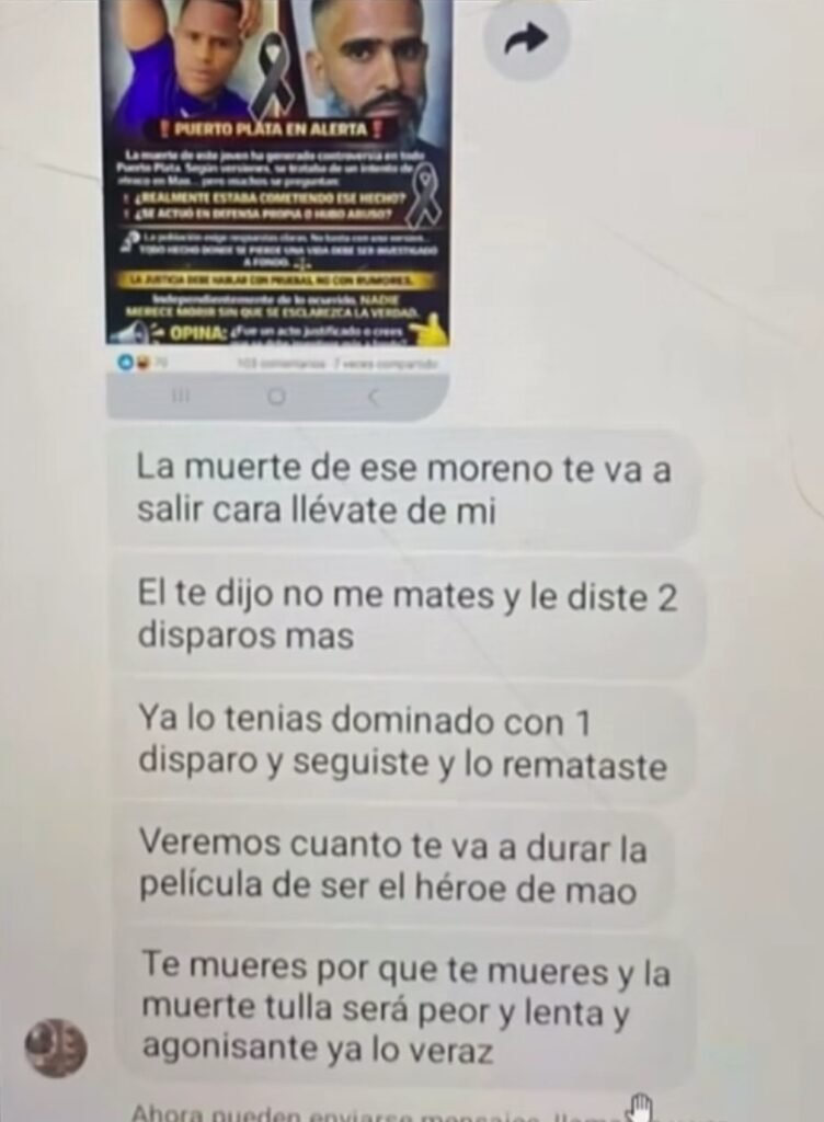 SANTO DOMINGO.– Un hombre que mató a dos delincuentes que intentaban asaltar el negocio de su padre en Mao, Valverde, denunció este lunes que recibe amenazas de muerte junto a su familia.