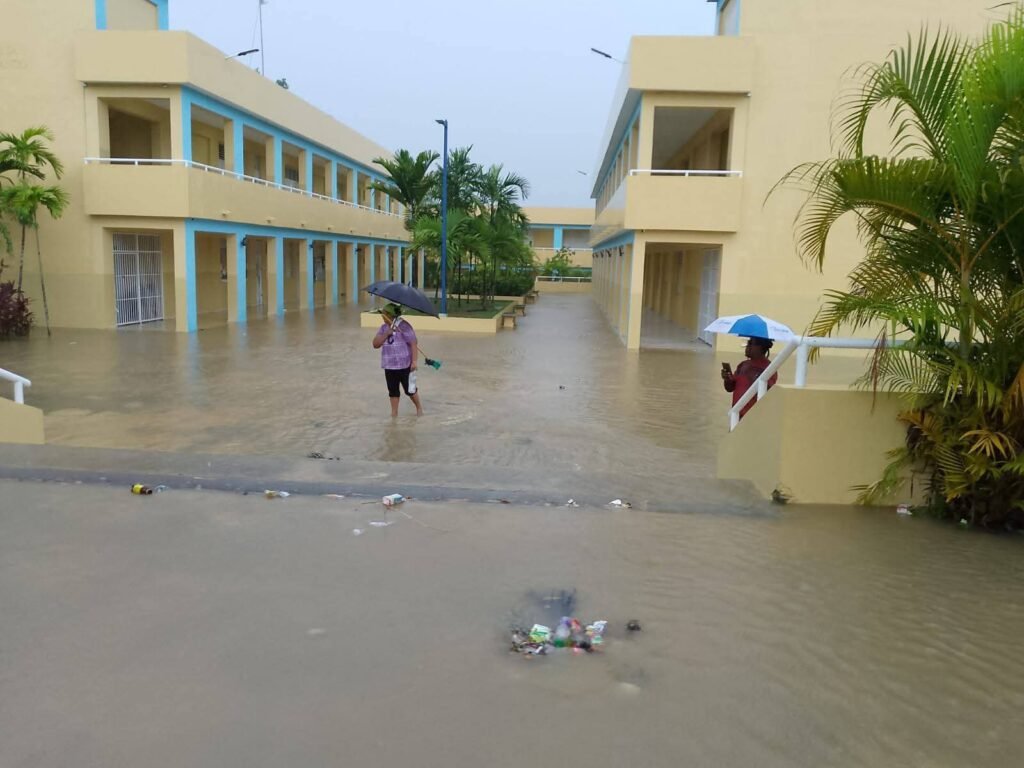Inundaciones afectan la escuela Natalia Blanco en Higüey