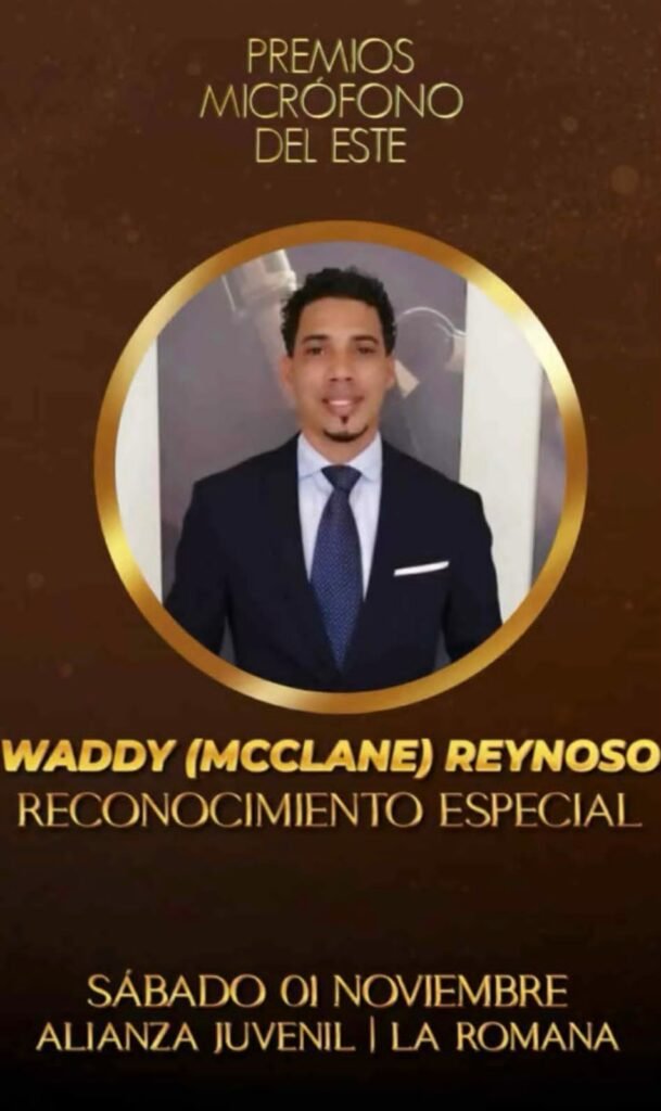 HATO MAYOR DEL REY.– El destacado comunicador y director de la emisora Azúcar 89.1 FM, Waddy McClane Reynoso, será homenajeado este sábado 1 de noviembre durante la gala de los Premios Micrófono del Este, a celebrarse en la ciudad de La Romana.