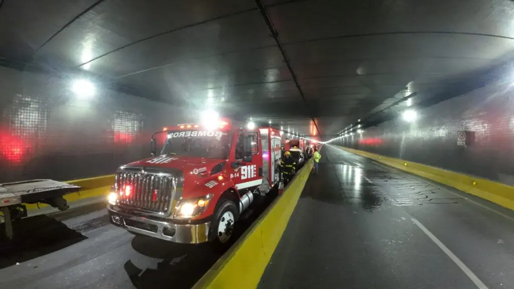 Se normaliza tránsito tras incendiarse vehículo en túnel de la 27 de Febrero; 911 movilizó equipos