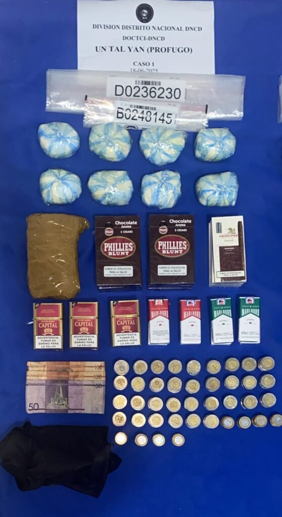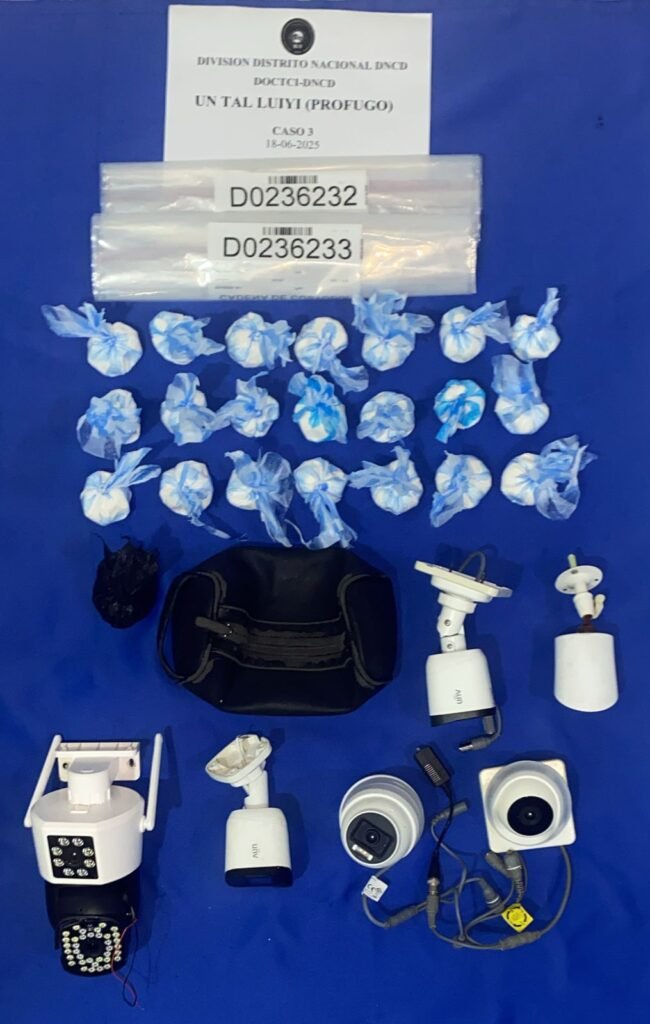 Según un el informe policial se confiscó, además, 6 cámaras de vigilancia, 2 balanzas, 14 cajetillas de cigarrillos, 10 tabacos, dinero en efectivo, entre otras evidencias.