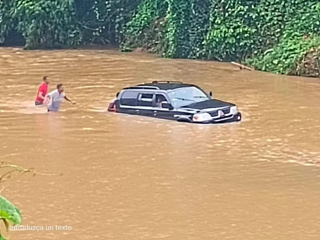 Vehículo queda atrapado en las aguas del río Ozama en Don Juan, Monte Plata