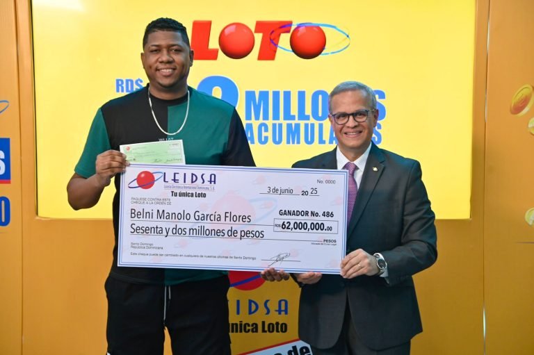Este martes, la Lotería Electrónica Internacional Dominicana, S.A (LEIDSA) le hizo entrega del cheque convirtiéndose así en el millonario 486 del Loto.